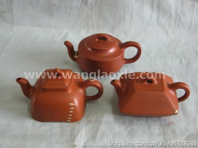 这三把壶是唐山马高华先生的,他从唐山赶到沈阳工业展览馆,因我正在参加6月6日的(2012中国·辽宁非物质文化遗产暨保护性成果展),我在现场示范展示锔瓷艺术的工作过程。这三把壶可真是费了一番周折;尤其是这把方壶,是壶底开裂,缝隙涨开很大,我用袢绳慢工慢收,花了两天时间终于锔好,另一把壶嘴用了嵌丝梅花的绝技修复完成的。